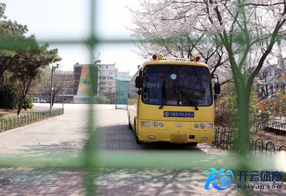 2020年3月31日,在韩国首尔,一辆小学校车停在校园里。新华社/纽西斯通信社