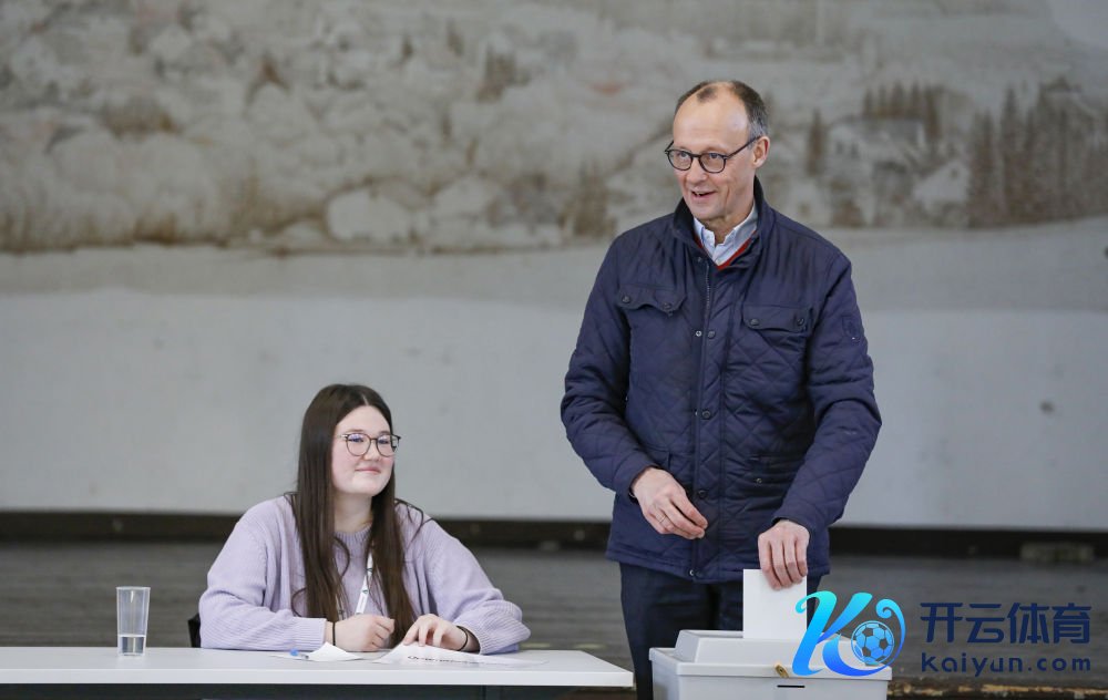 2月23日,在德国北莱茵-威斯特法伦州阿恩斯贝格,德国定约党总理候选东说念主默茨在一处投票站投票。新华社记者张帆摄