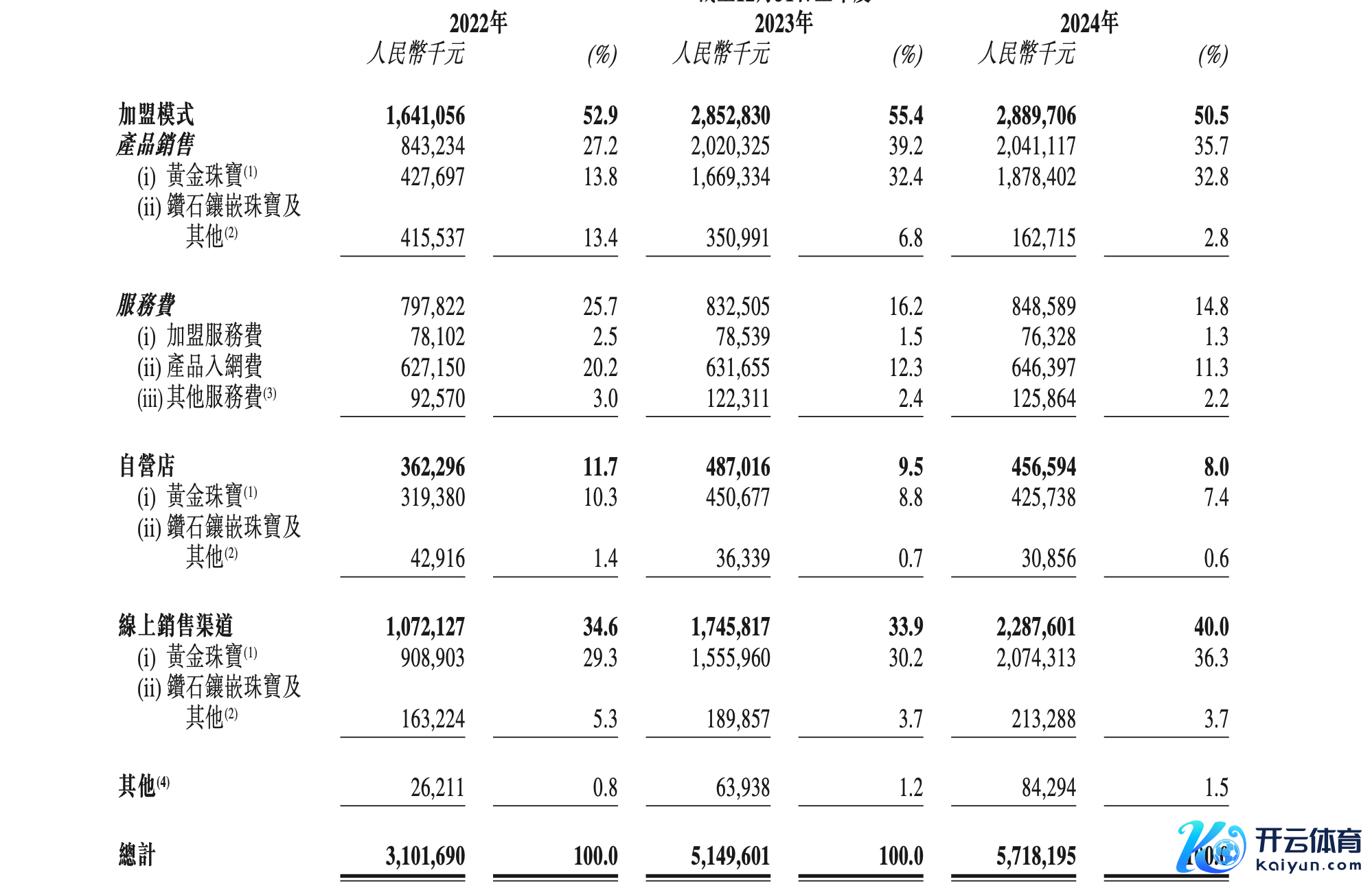 现时,周六福加盟模式收入占比依旧过半,最新招股书自满,公司加盟模式家具销售额占比依旧过半。2022年~2024年,隔离为52.9%、55.4%、50.5%,而同时自营店家具销售额占比隔离为11.7%、9.5%和8%。