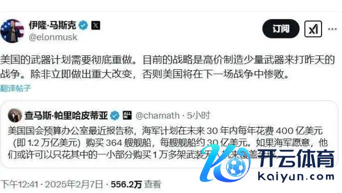 马斯克觉稳妥前好意思国产的刀兵数目未几,但资本却贵得离谱,这种情况根底应付不了畴昔的斗殴。要是不迅速退换过来,临了的抑遏大要会是惨痛的失败。